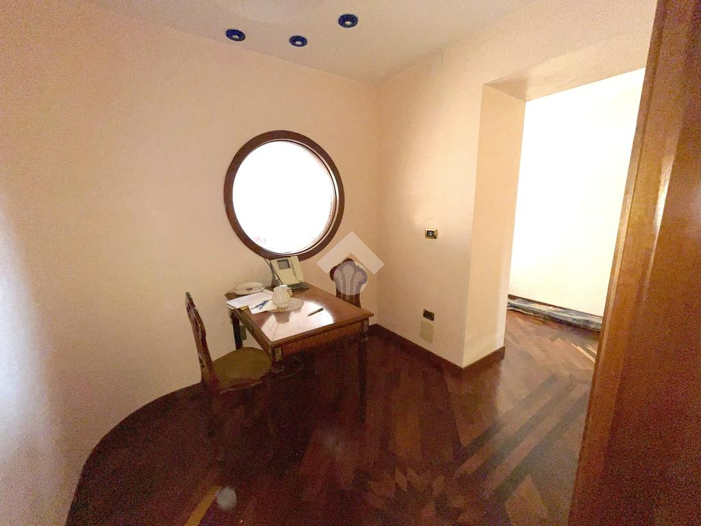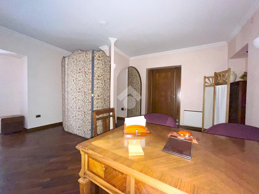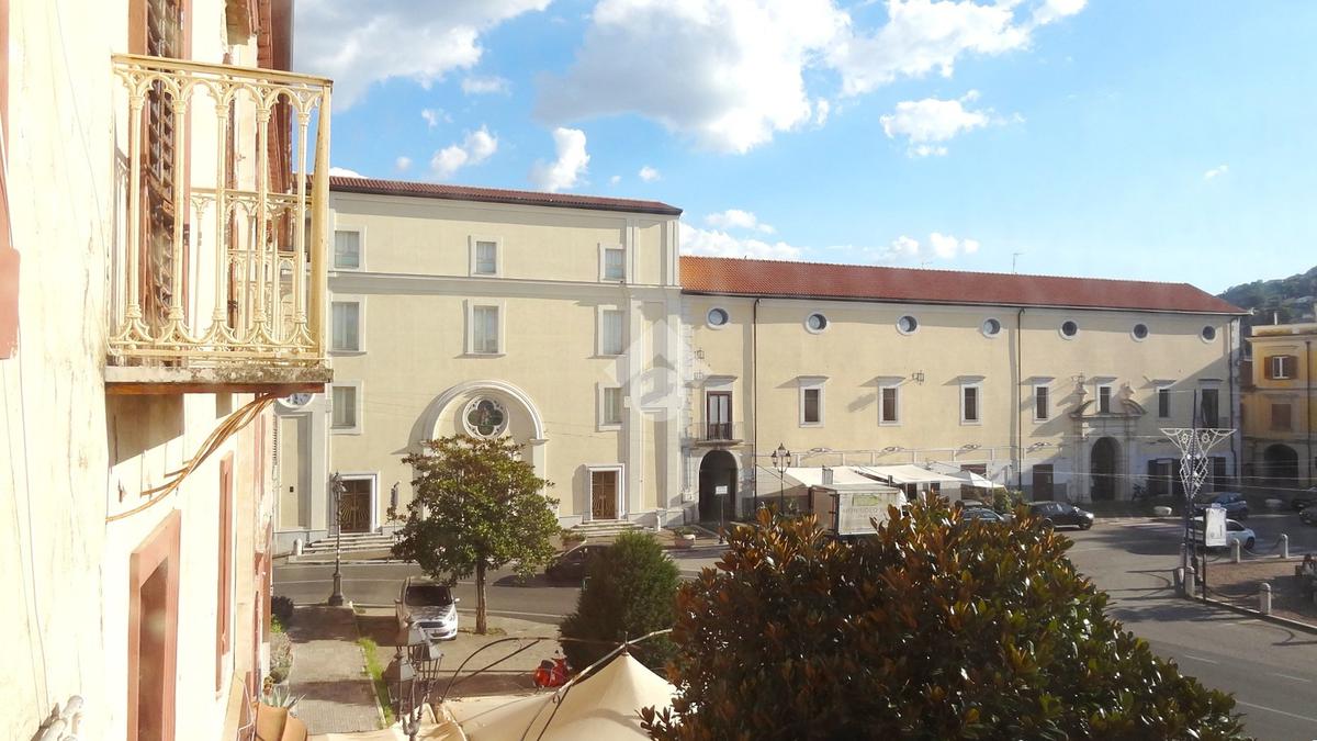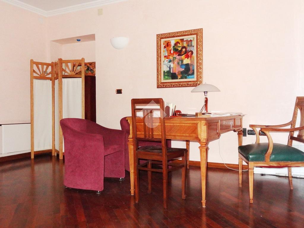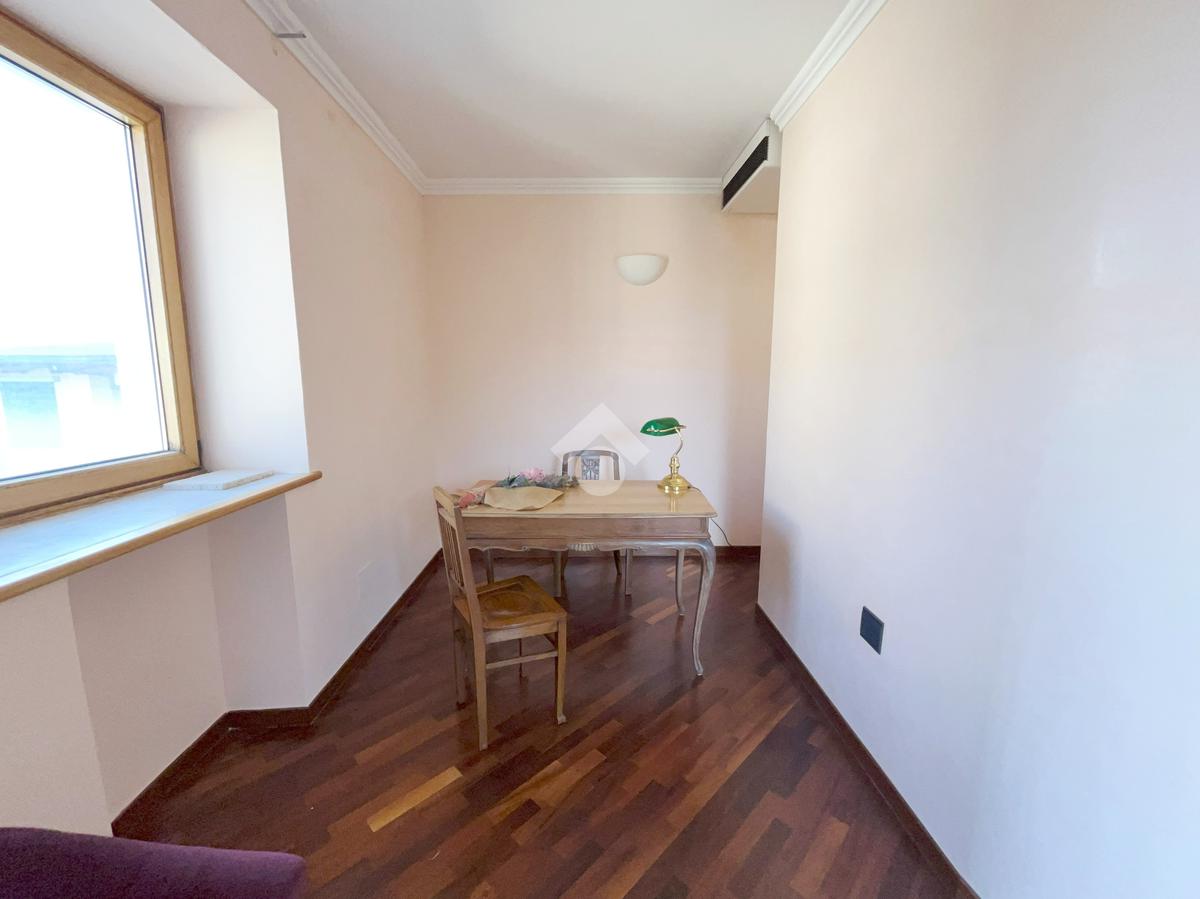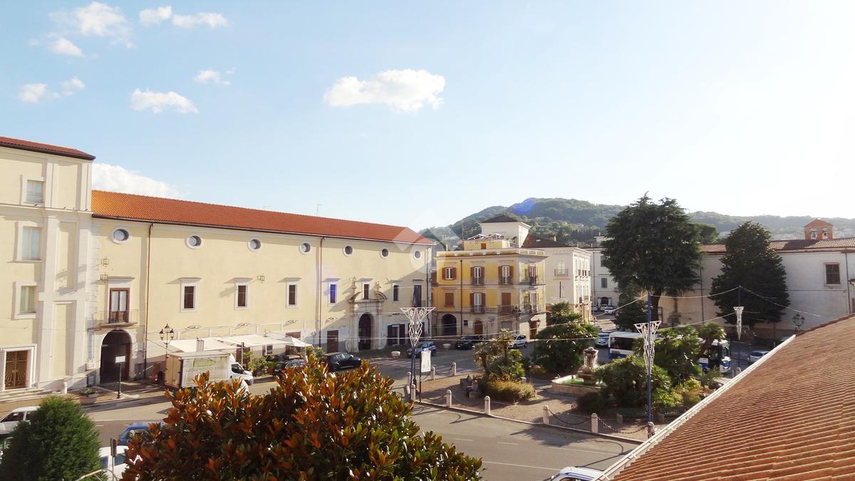 L'abitazione, ideale come studio professionale, si presenta con un elegante ingresso, un soggiorno con affaccio sulla Piazza, tre camere, due bagni ed un ampio terrazzo di circa 50 mq.