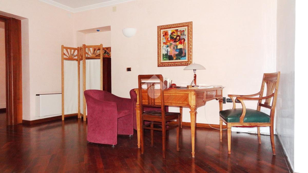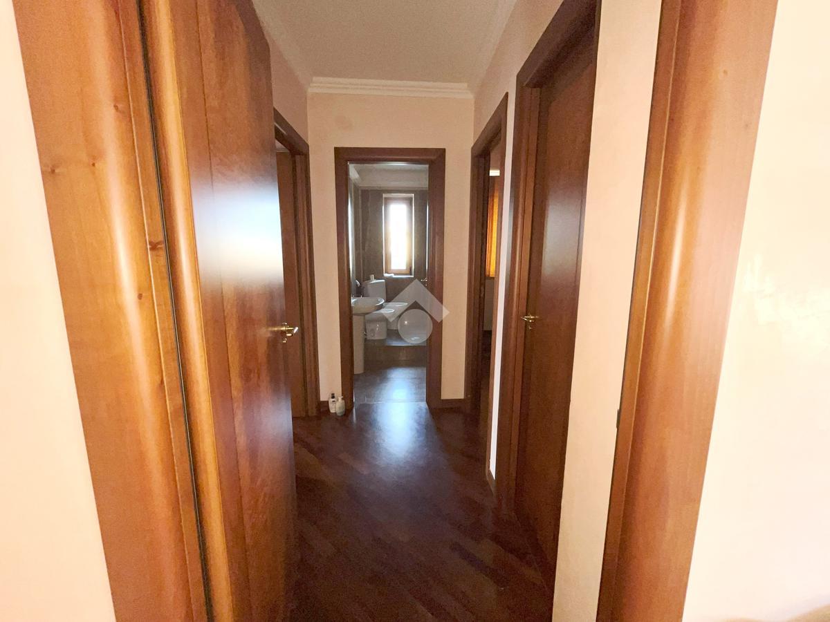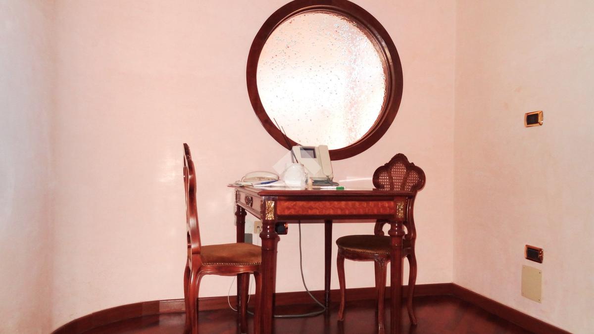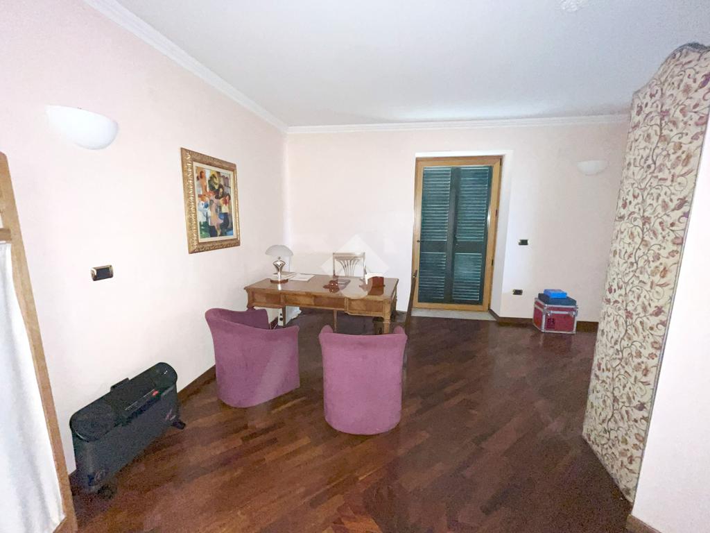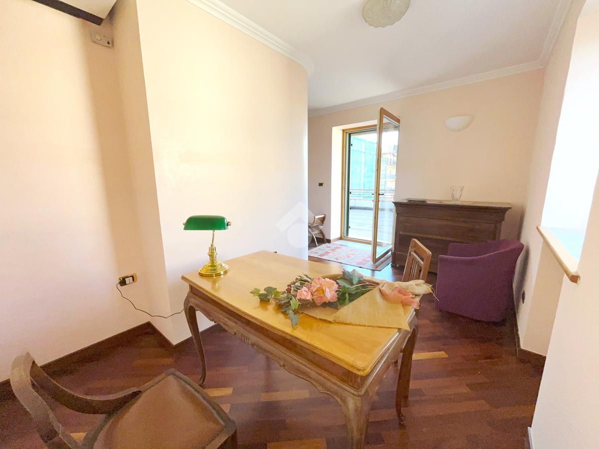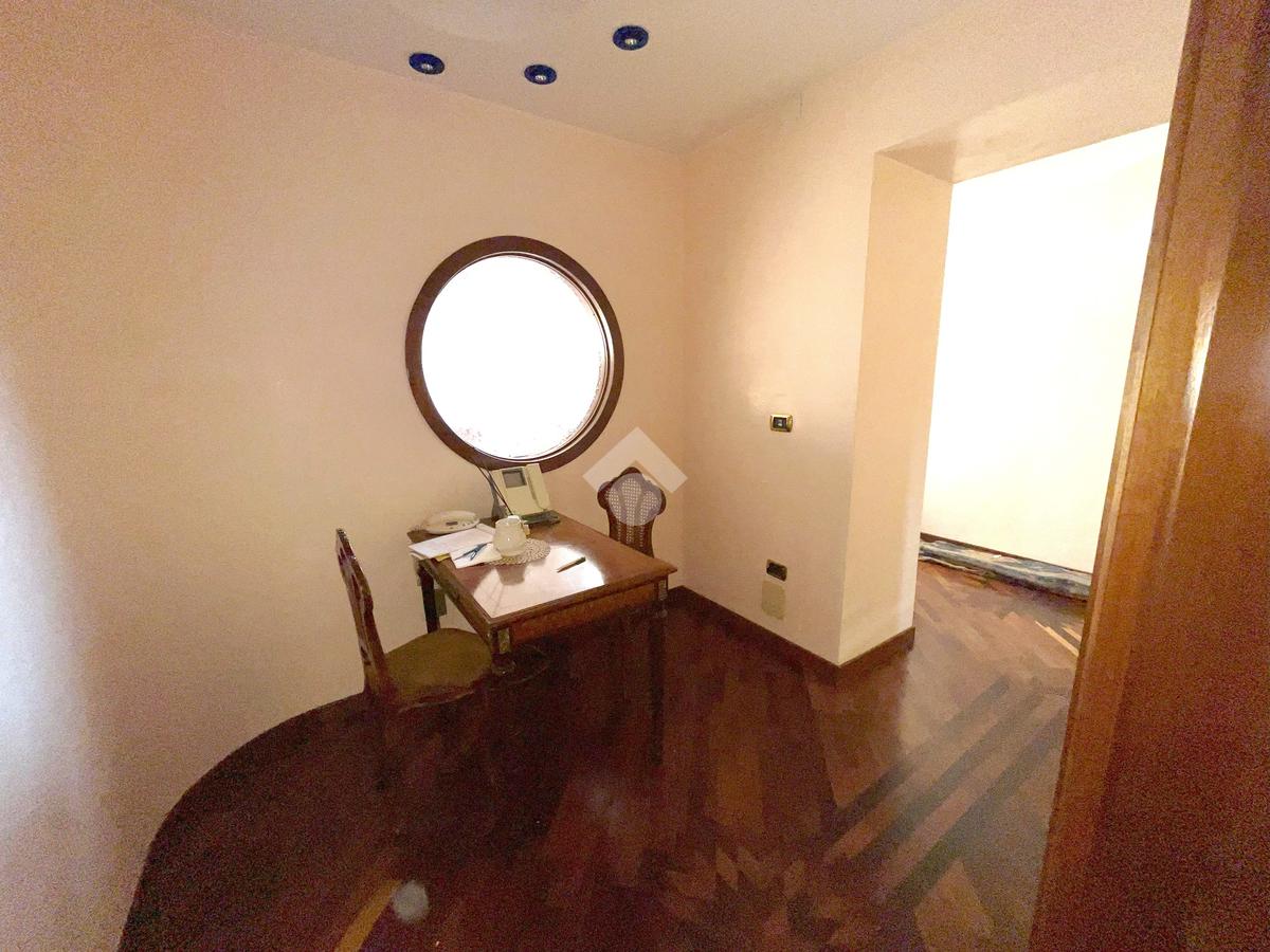 L'abitazione, ideale come studio professionale, si presenta con un elegante ingresso, un soggiorno con affaccio sulla Piazza, tre camere, due bagni ed un ampio terrazzo di circa 50 mq.
