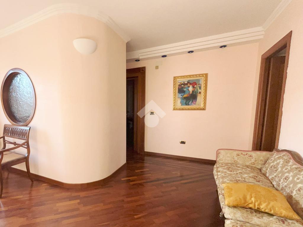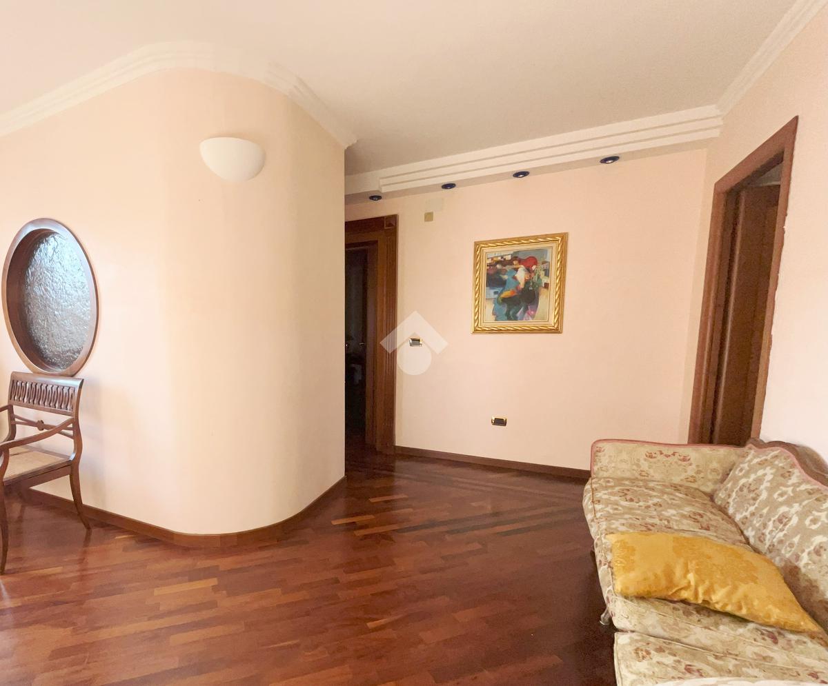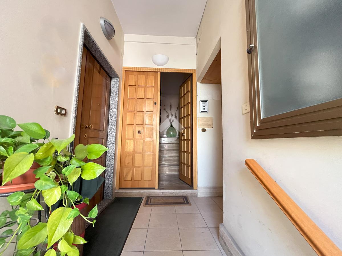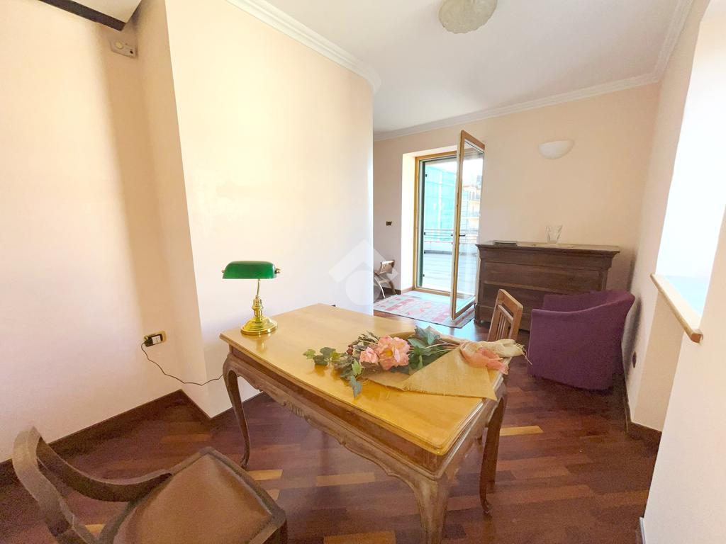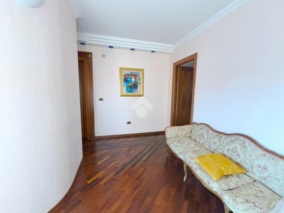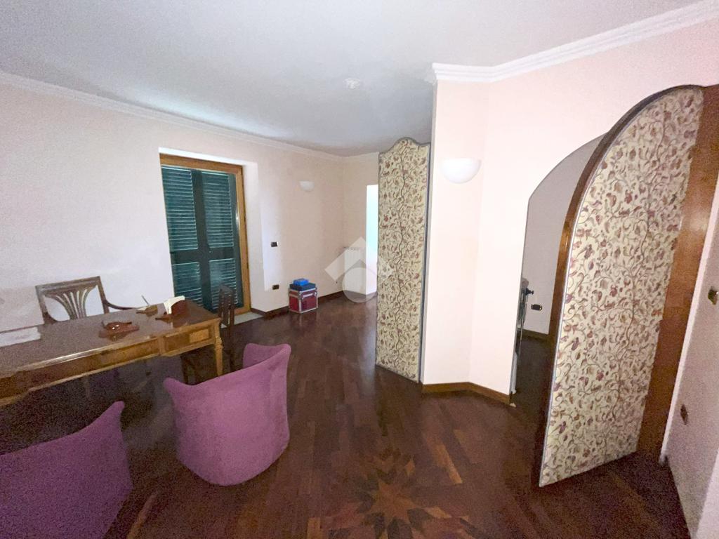 L'abitazione, ideale come studio professionale, si presenta con un elegante ingresso, un soggiorno con affaccio sulla Piazza, tre camere, due bagni ed un ampio terrazzo di circa 50 mq.