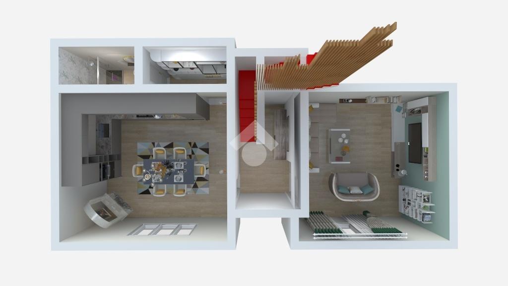 Il piano rialzato è composto da un'ampia e luminosa cucina con camino, un bagno ed un comodo salone con affaccio su strada.