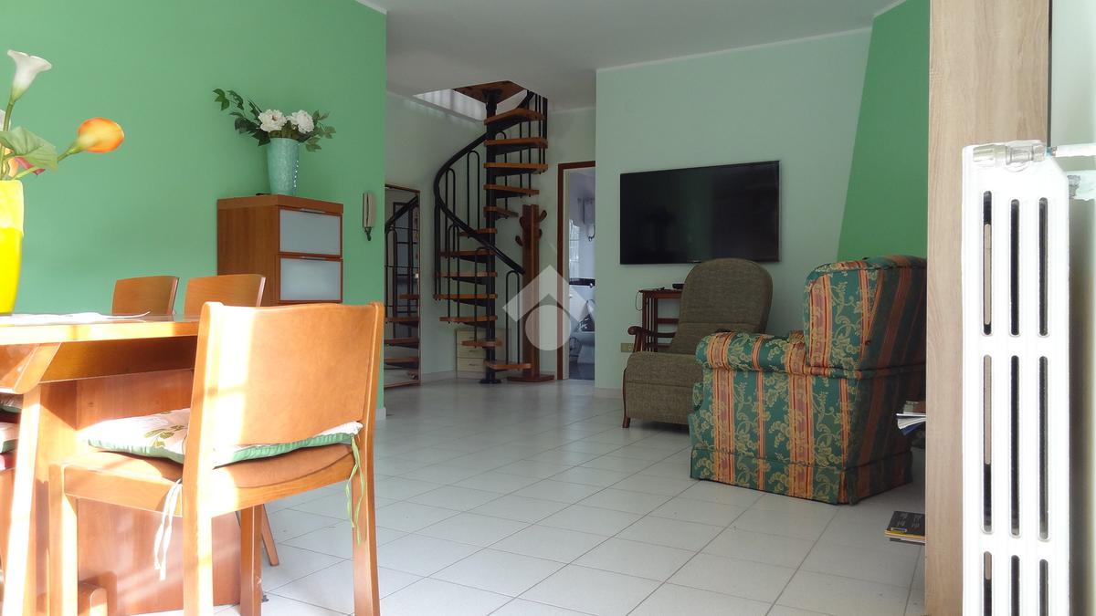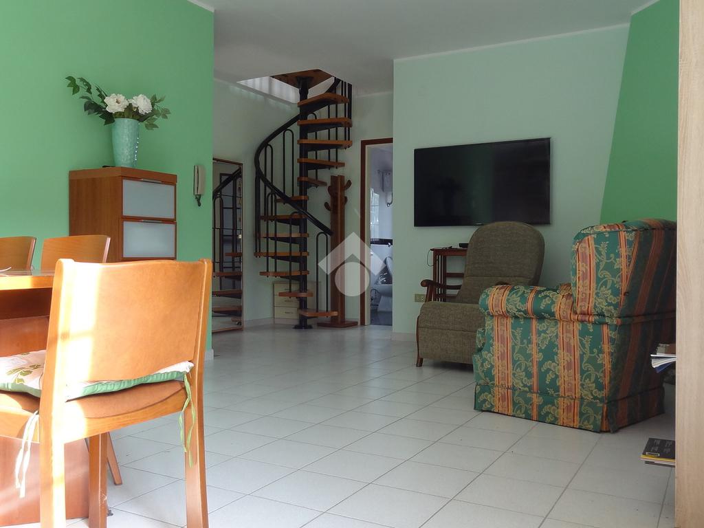 L'immobile è cosi suddiviso piano terra con ampio soggiorno con camino e cucina con affaccio sulla corte esclusiva di circa 200 mq , una camera da letto e accessori mentre una scala interna porta alla zona notte situata al piano primo composta da tre camere da letto servite da balcone oltre ampio bagno con vasca.